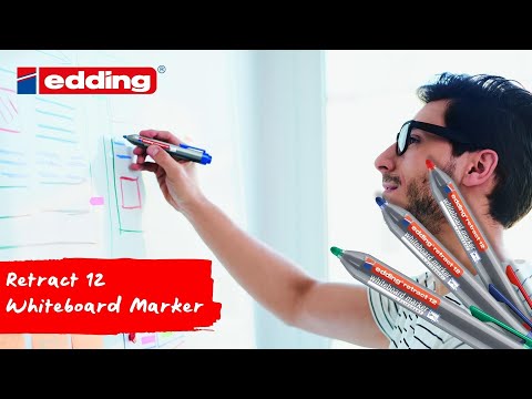 Whiteboardmarker edding retract 12. Nachfüllbarer Marker für Whiteboards. Geeignet für Beschriftungen und Markierungen auf geschlossenen Oberflächen, z.B. Whiteboards/weißen Emaille-Tafeln und Glas. Trocken abwischbar von fast allen geschlossenen Oberflächen. Schreibt flüssig und mit kräftigen Farben. Geruchsarme Tinte auf Alkoholbasis ohne Zusatz von Butyl-Acetat. Lichtbeständig und schnelltrocknend. Rundspitze. Der Whiteboardmarker hat keine Kappe, die Spitze wird durch einfachen Druck auf den Druckknopf aus- und eingefahren. Die Abdichtungstechnik verhindert das Austrocknen des Markers bei eingezogener Spitze. Kunststoffschaft mit Kunststoffclip. Druckknopf in Schreibfarbe. Schaftfarbe: grau. Strichstärke: 1,5 - 3 mm. Schreibfarbe: blau.